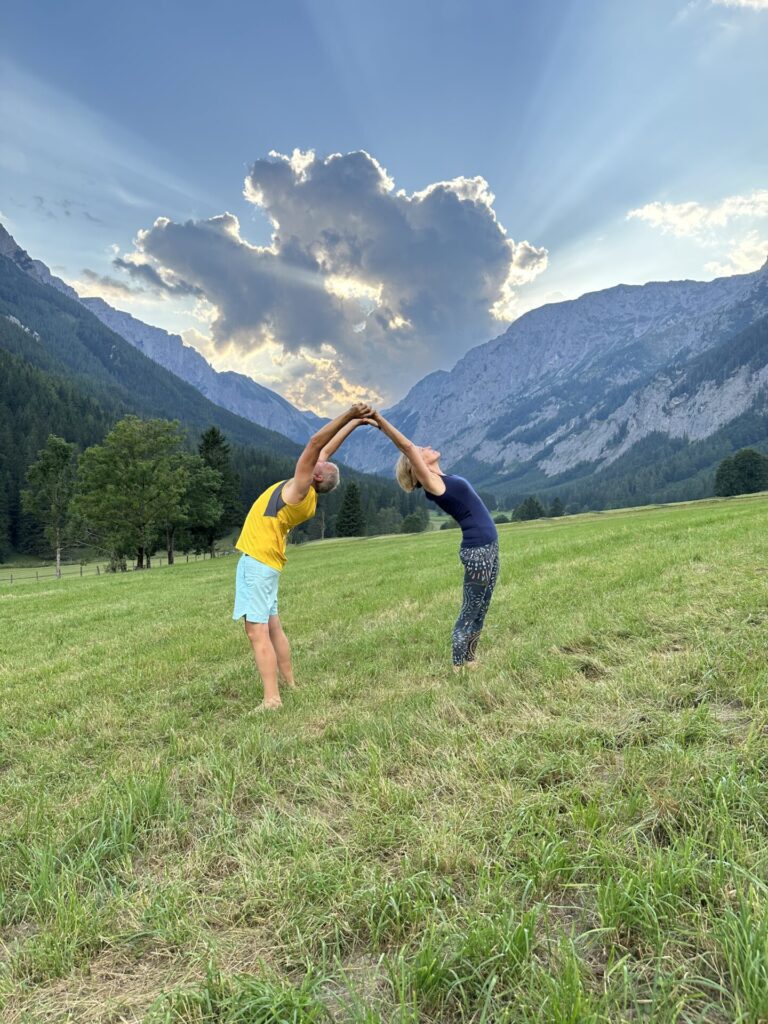 aus der gemeinsamen yoga-praxis mit axel hat sich auch die freude an yoga zu zweit entwickelt. die grenze zwischen leichtigkeit und herausforderung neu auszuloten, sich zu spüren und zu fordern, aber nicht zu überfordern und grenzen zu akzeptieren; das gehört zu yoga, aber auch zum alltag. das vermitteln wir gerne in unseren einheiten.